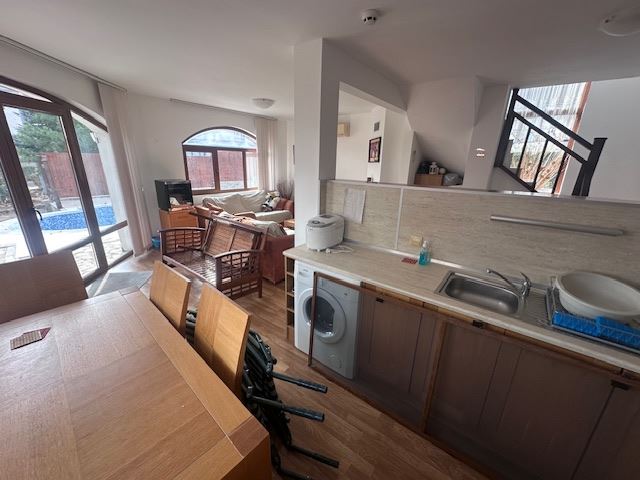 Дом продаётся полностью меблированным, со стильной обстановкой, оборудованной кухней и всеми удобствами.